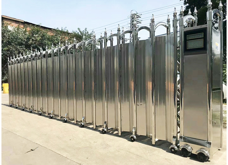东莞市寮步金盛丰电动门伸缩门平移门可以定做,高低宽窄都是可以做的,有一些屏风电动伸缩门可以封一半也可以冲孔等;色彩可以跟据你喜欢做成什么色,可以做灰色电动伸缩门、咖啡色电动伸缩门、黑色电动伸缩门、红色电动伸缩门、金色电动伸缩门等不同色电动伸缩门,也可以做不同款式电动伸缩门,只要客户需要我们尽量满足。